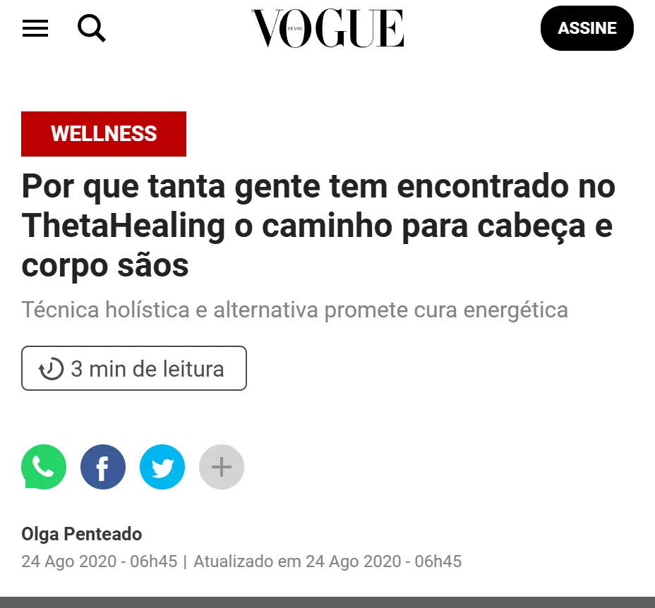 “Passei muitos anos procurando um tratamento para psoríase, que é uma doença auto-imune; passei por vários especialistas, médicos, tomei muito remédio, fiz uso de muita pomada para aliviar, e há 1 ano e meio fazendo o tratamento, com terapia, ThetaHealing, Reiki, com a Luiza, e foi quando eu entendi que a cura, à melhora, o alívio da psoríase era de dentro para fora e não de fora para dentro, eu tinha 90% do meu corpo tomado de feridas e agora o mais gostoso foi poder olhar de novo pro corpo e ver que tá tudo bem, que tá tudo limpo!